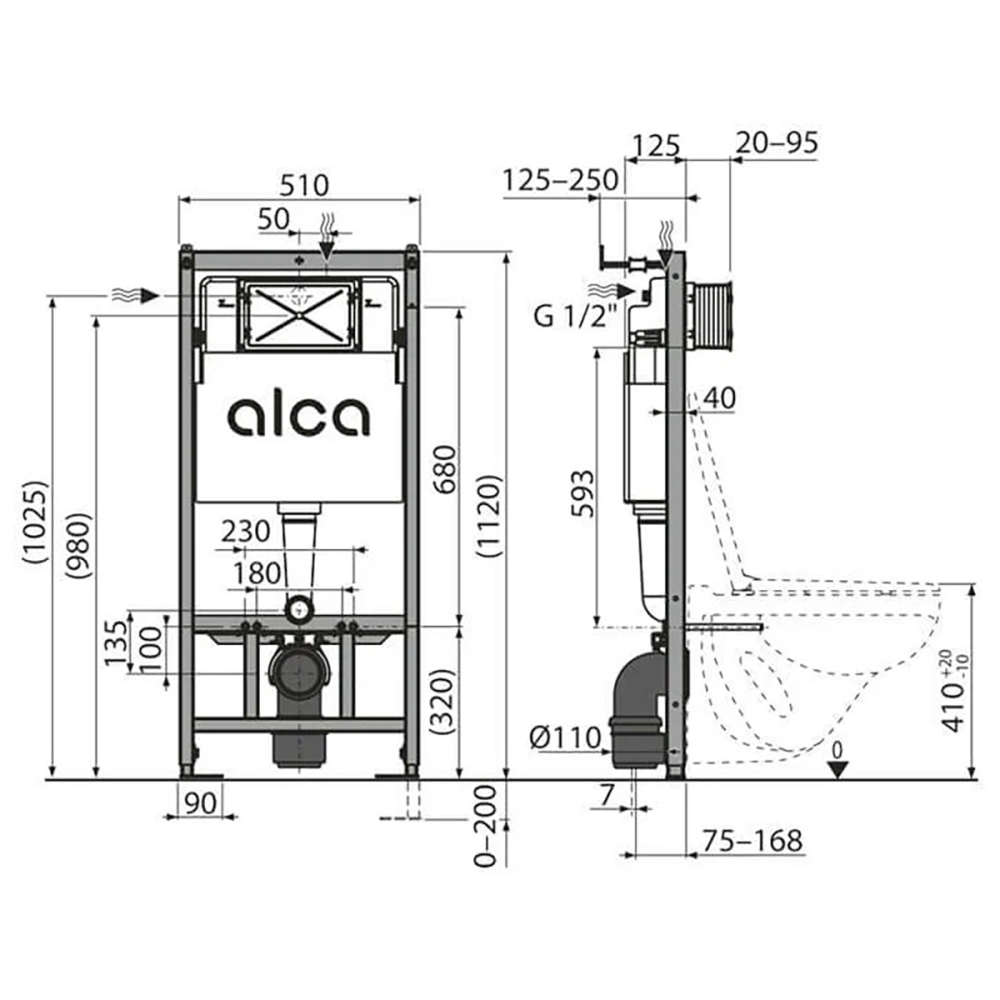 Инсталляция Alcadrain Sadromodul для скрытого монтажа унитаза с клавишей смыва с клавишей смыва — это система, предназначенная для установки подвесного унитаза. Конструкция представляет собой прочную раму и бачок скрытого монтажа объемом 9 л.