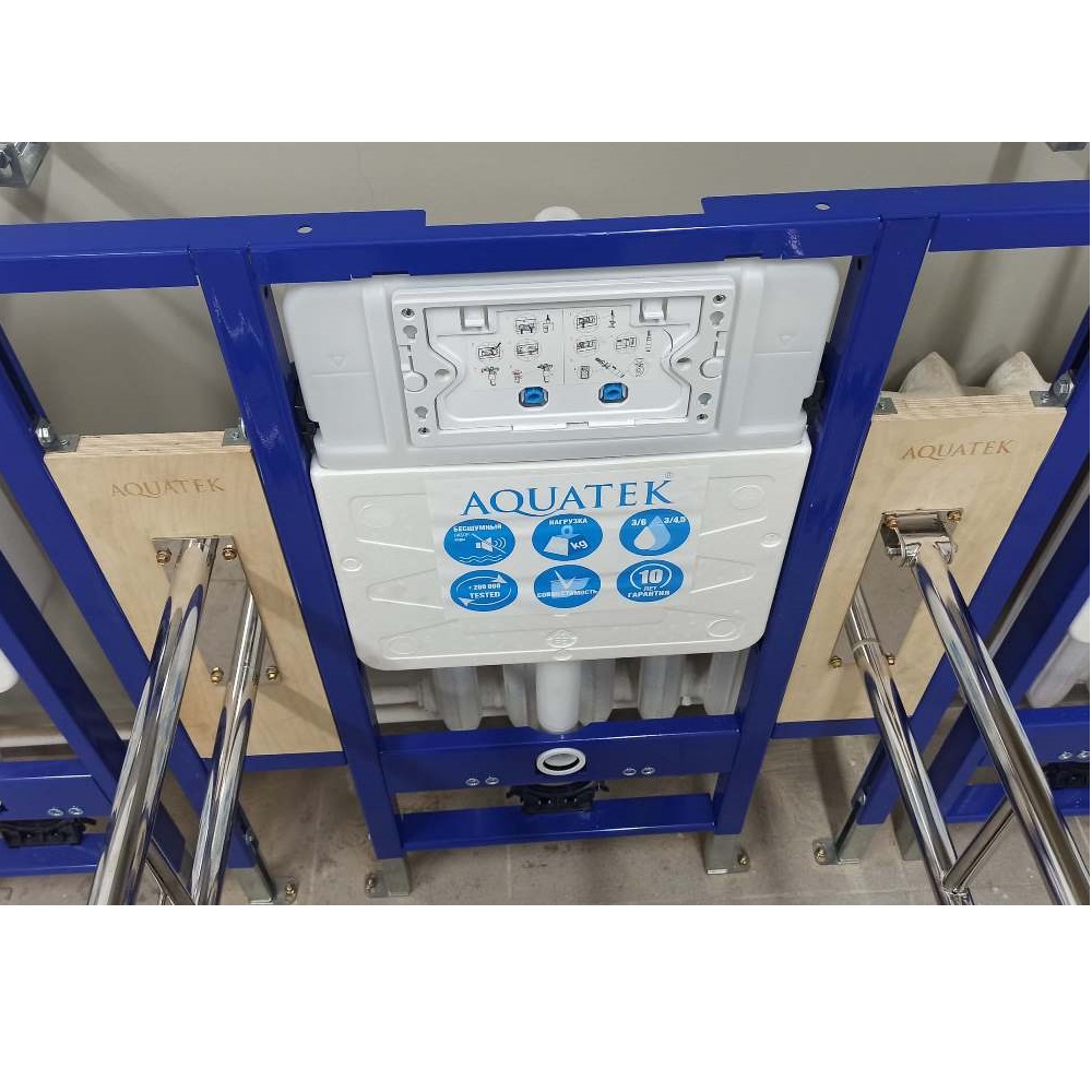 Инсталляция Aquatek INS для скрытого монтажа унитаза для установки поручней и опор — это система, предназначенная для установки подвесного унитаза. Конструкция представляет собой прочную раму и бачок скрытого монтажа объемом 6 литров.
