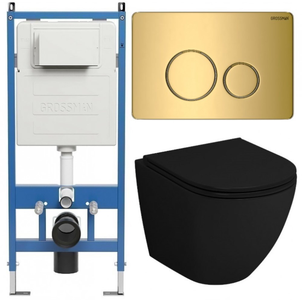Комплектация: Инсталляция Grossman + Унитаз подвесной Grossman GR-4455BMSQ + Крышка-сиденье Grossman + Комплект креплений + Звукоизолирующая прокладка + Клавиша смыва Grossman 700.K31.05.30M.30M.