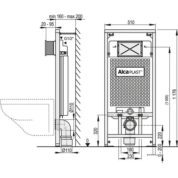 Комплект системы инсталляции Alcaplast Sadroмodul для сухой установки высота 1,2 м с кнопкой смыва белая/хром