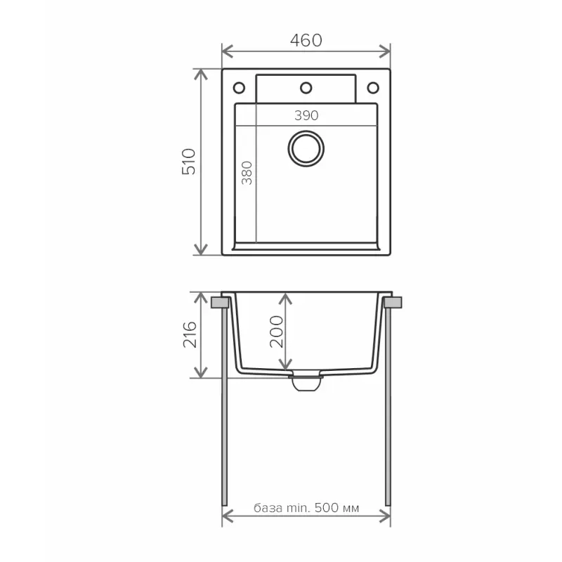 Мойка кухонная Polygran Argo имеет размеры 46х51 см., ширина чаши: 39 см. Прямоугольная форма. Цена указана за мойку со сливом-переливом.