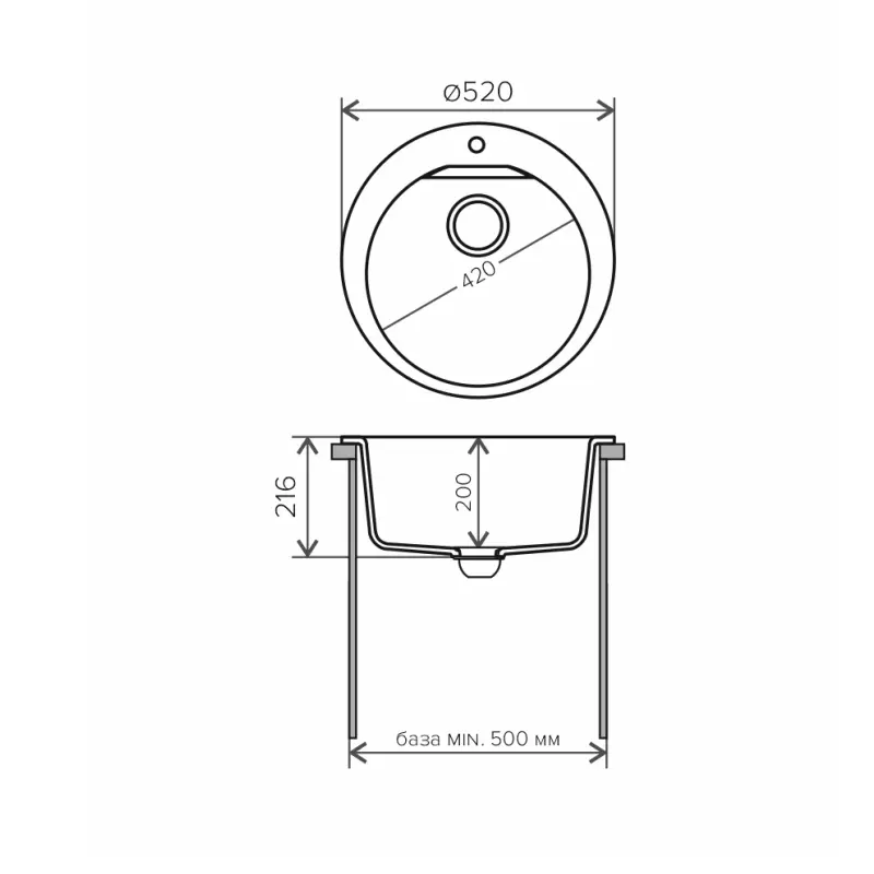 Мойка кухонная Polygran Atol имеет размеры 52х52 см., ширина чаши: 42 см. Круглая форма. Цена указана за мойку со сливом-переливом.