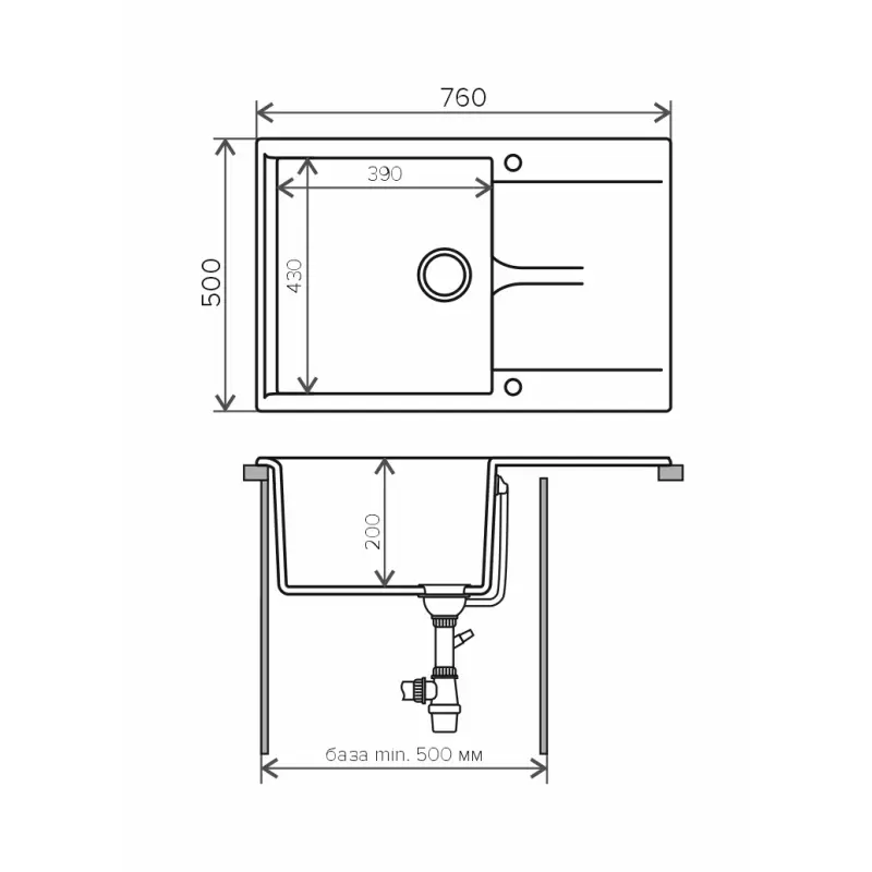 Мойка кухонная Polygran Gals имеет размеры 76х50 см., ширина чаши: 39 см. Прямоугольная форма. Цена указана за мойку со сливом-переливом.