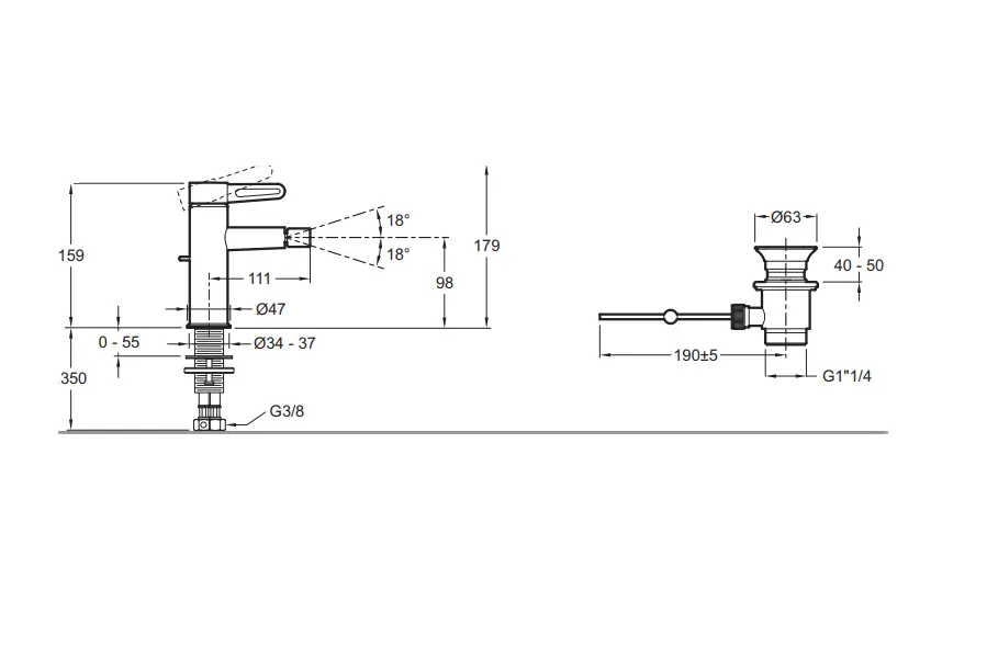Смеситель для биде Jacob Delafon Nouvelle Vague с донным клапаном E78342-CAT