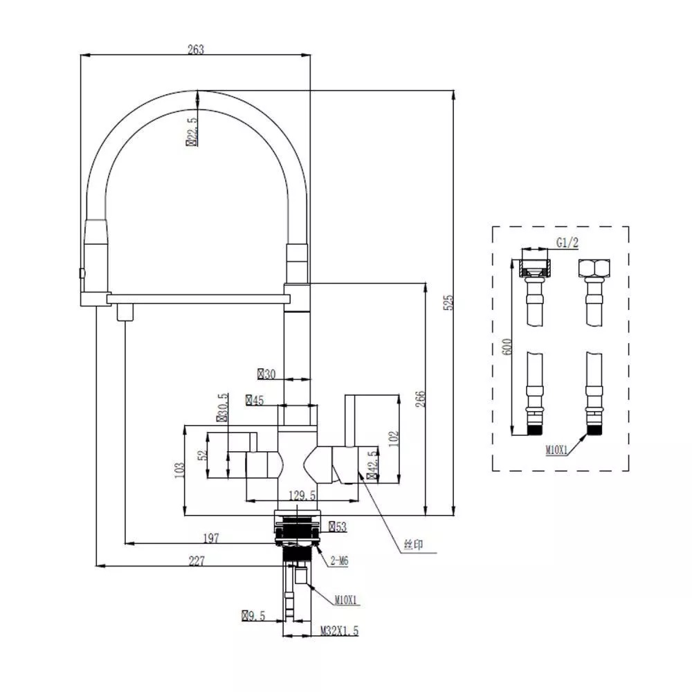 Смеситель для кухни Cersanit Zen с подключением фильтра с гибким изливом Золото матовое 68251