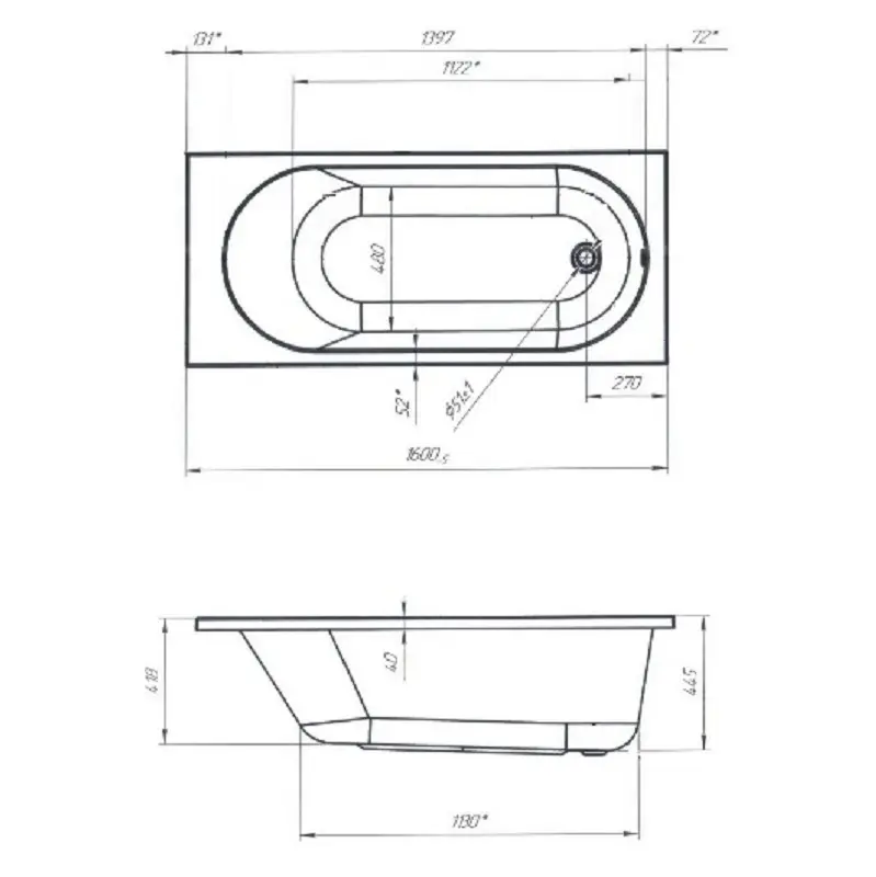 Данный товар: Ванна акриловая 1MarKa Atlas 160х70 Белый 01атл1670
